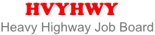 HVYHWY.com provides available jobs posted by companies in the construction industry on this website for information only and this information is not warranted to be complete, current and /or accurate. HVYHWY.com assumes no liability or duty to update or to send any update to users of its service nor does HVYHWY.com guarantee that users will receive a job that has been posted. No user may publish the information contained without receiving written authorization from HVYHWY.com